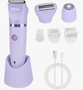 Ufree Bikini Trimmer Electric Razors for Women, Rechargeable Pubic Body Hair Trimmer Electric Shaver for Legs Body Hair, Bikini Shaver IPX7 Waterproof, Gifts for Women, Purple
