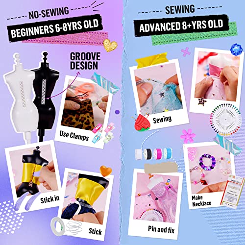 ★NO-SEW MODE: With the groove back design of mannequins, kid will more easily to complete the outfits without sewing clothes. Put the needles and pins away, use tying methods, tapes and stick to create your own fashion costumes safely.