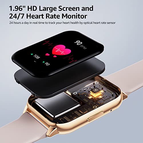 AcclaFit Smart Watch (Answer/Make Call), 1.96″ Full Screen Fitness Tracker with 112+ Sport Modes, Smartwatch with Heart Rate Blood Oxygen and Sleep Monitor, 5ATM Waterproof Watch for Android iOS