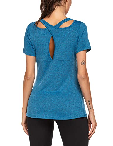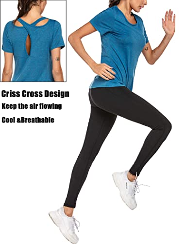 Nice Design: This classic round neck athletic t-shirt is well designed with criss cross open back great for wicking away sweat and catching up with current fashion trends, loose fit style gives you flexibility and cool feeling