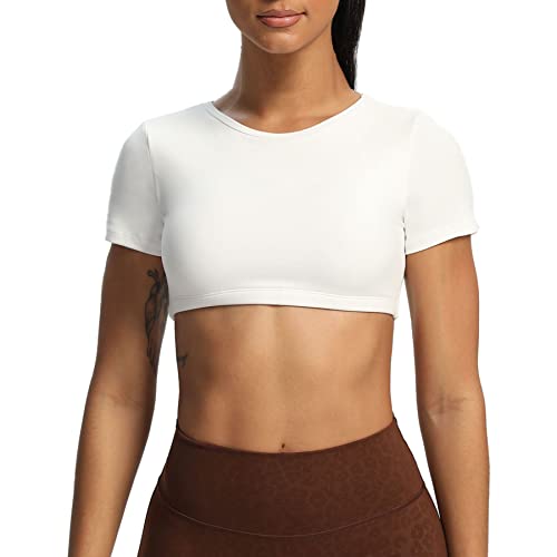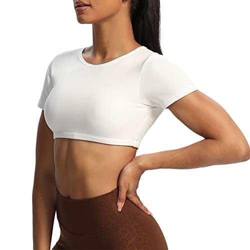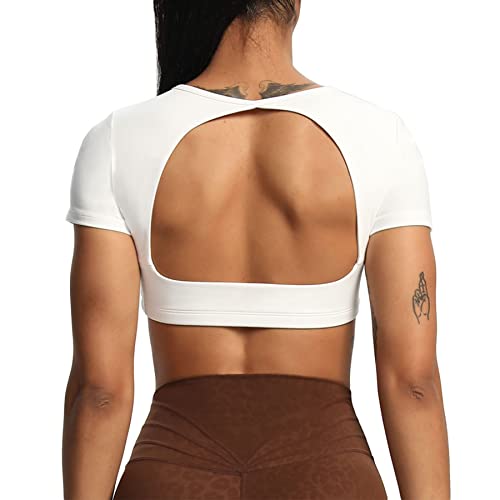 Aoxjox Short Sleeve Crop Tops for Women Clarissa Hollow Back Workout Crop T Shirt Top