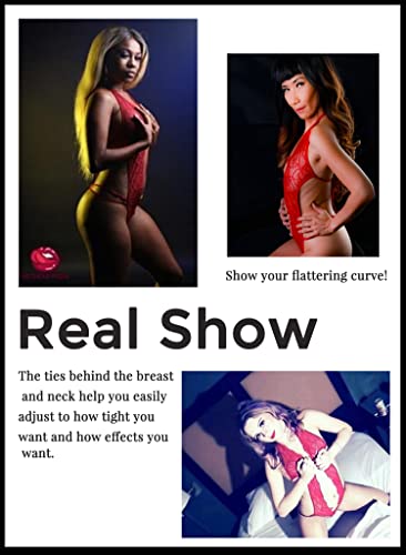 Designs: The ties behind the breast and neck help you easily adjust to how tight you want and how effects you want. Stretchy material and adjustable ties can get everyone perfect fit and comfy. Show your flattering curve perfectly. This lace lingerie bodysuit is a great choice to spice up your life.