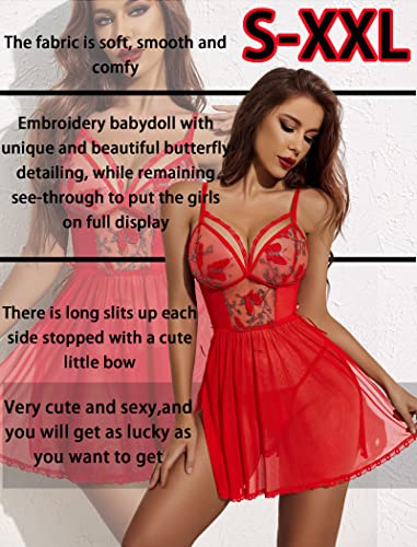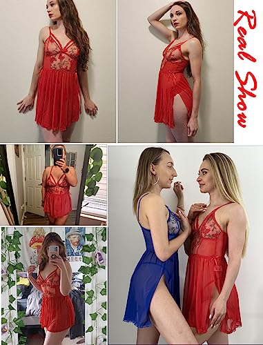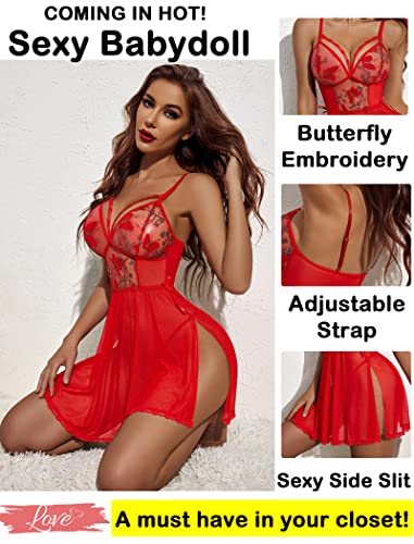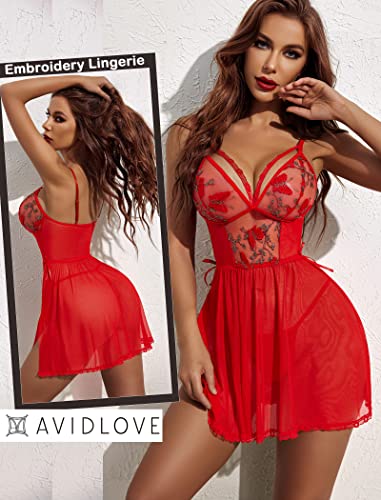 Avidlove Women’s Lingerie Lace Chemise Floral Embroidery Mesh Babydoll Side Slit Sleepwear
