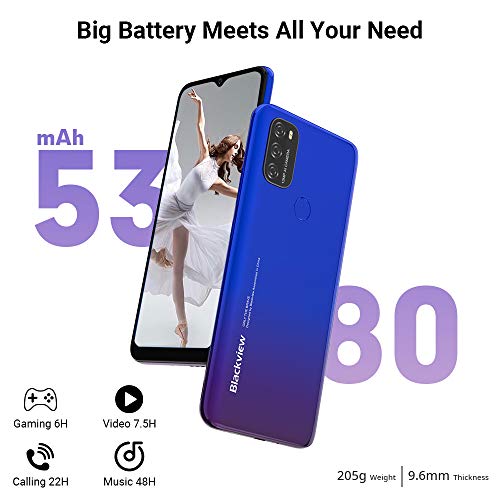 Blackview Unlocked Cell Phone A70(2022) 3GB+32GB/SD 128GB Android 11 Phone,5380mAh Massive Battery,Octa Core Smartphone Unlocked,4G Dual SIM Face Unlock&Fingerprint Mobile Phone 6.5″ FHD+Large Screen