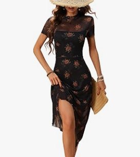 - Features:Short sleeve, round neck, high collar, midi length, slim fit, elegant dress, mesh spliced double-layered design, a line, waist-cinched, y2k dress, goth dress, sexy dress, romantic dress, bohemian dress, floral wedding guest dress for women