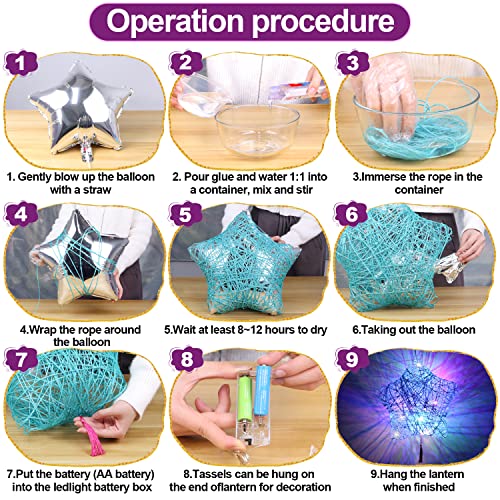 [Easy to Assemble] – Our manual will show you how to make string lights before you start the DIY kid’s art supplies project. Warmly remind that we prepared full craft supplies for kids but would better put a tablecloth there to avoid being full of dirt, better someone holds the balloon when wrapping that will be easier to complete the production of the craft kits. If you like, then also can put some small decorations on it.