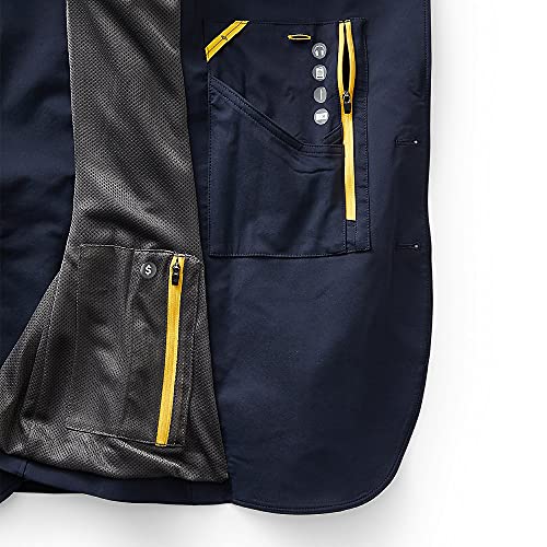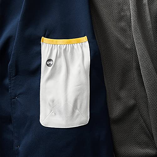 Our updated travel blazer has a new wrinkle-free fabric and extra interior pockets for enhanced utility and security while on the road. The polyester/spandex provides the comfort of 2-way stretch and has a durable, water-repellent finish that causes moisture to bead and roll off rather than soak into the fabric.