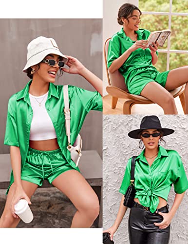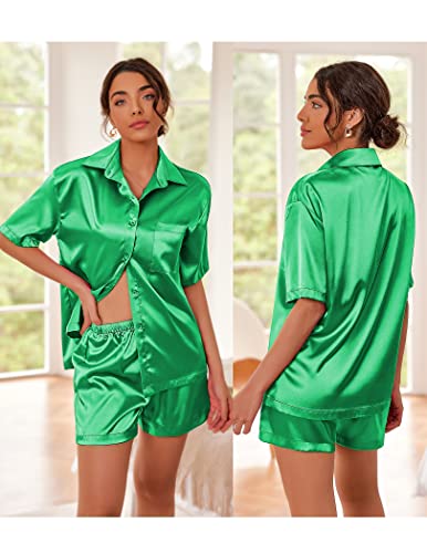 Ekouaer Pajamas for Women Silk Soft Sleepwear Short Sleeve Button Down Pjs Satin Top and Shorts 2 Piece Lounge Set S-XXL