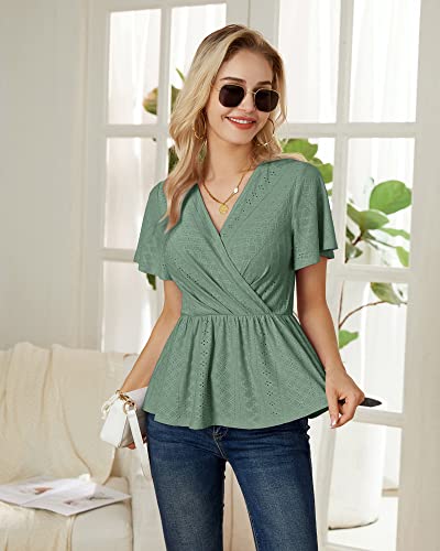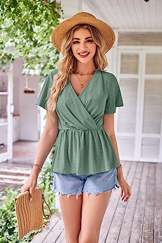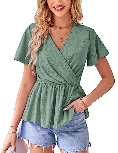 GRACE KARIN Womens Wrap Tops V Neck Eyelet Top Ruffle Sleeve Peplum Blouse 2023 Summer Casual T Shirts