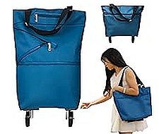- 【WITH WHEELS】Equipped with wheels, this collapsible trolle-y Grocery ba-g provides effortless mobility, making it ideal for transporting groceries, laundry, and other items around the home or to and from the supermarket. It is also good for travel.