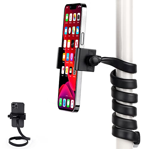 【Flexibility Design】:The gooseneck phone holder arm is made of Elastomer, ABS,TPE and Magnesium Aluminum Alloy material,durable and not easy damage,it is harmless to human body, phone bracket arm is wear-resistant which can be twisted and bent with different angles freedom,allowing you wrap twist mount around these surfaces:shopping cart, treadmill,stroller,elliptical,car headrest,spin bike, tree branch, metal pole etc.