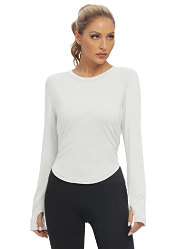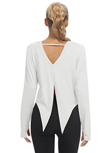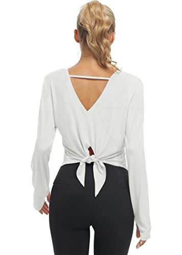 Mippo Long Sleeve Workout Crop Tops for Women Open Back Gym Yoga Athletic Shirt