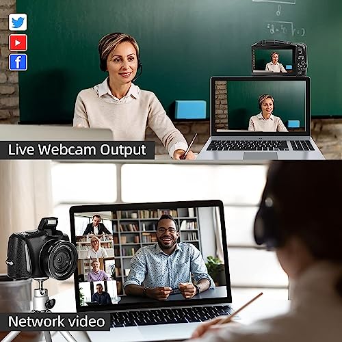 This video camera supports 4K video mode. You can share your life at any time, anywhere. You can also get clear audio with the built-in microphone in our vlogging camera. Itâs a great YouTube camera for youtubers. At the same time, you can use this 4K YouTube camera as webcam. Connect it with computer, then, you can use this YouTube camera kit as webcam in live broadcast or video call with friends.