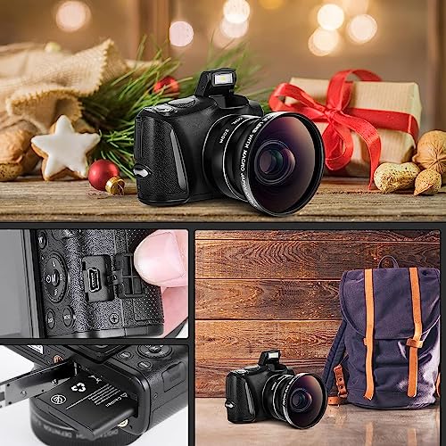 This digital camera supports 16X digital zoom when you taking video or photos. You can zoom in or zoom out according to your specific shooting scene. With super wide angle lens, you can get 45% more field of vision. With micro lens, you can capture all details of an object. Just take as many photos as you want because our digital camera with 32GB SD card is big enough to save all the details.