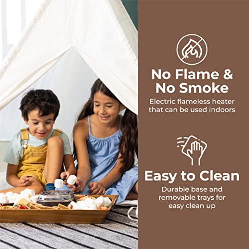 FLAMELESS HEATER: Forget the hassle of cutting wood and open flames. This portable unit is built with safety in mind. The electric flameless heater requires nothing but an outlet to start making perfect golden brown s’mores.