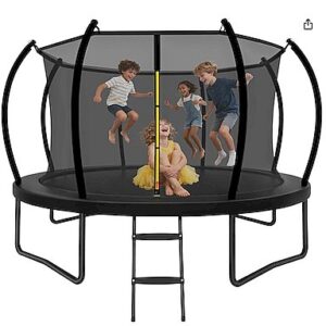 Trampoline Outdoor 14FT with Safety Enclosure Net and Ladder, ASTM Approved Recreational Trampoline for Kids and Adults, Rust-Resistant Frame