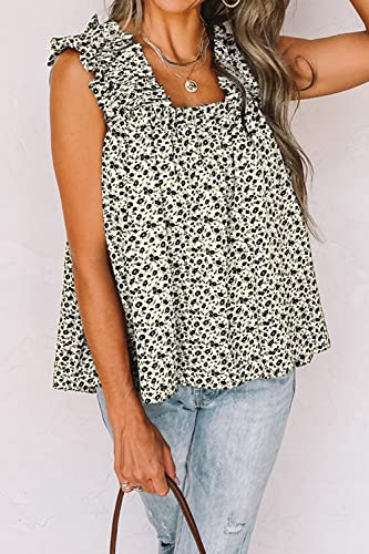 PRETTYGARDEN Boho Floral Tank Tops for Women, Shirred Straps Pleated Summer Casual Sleeveless Shirts Tops Beach Blouses