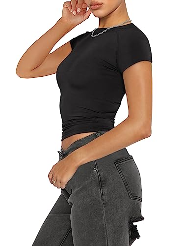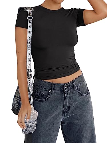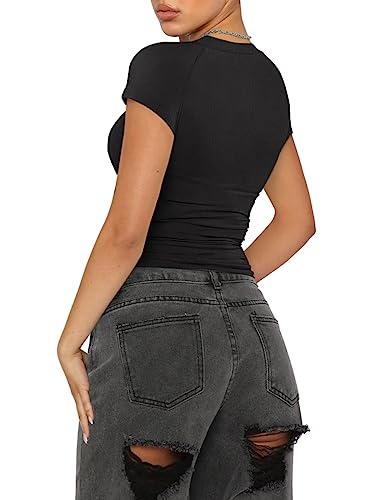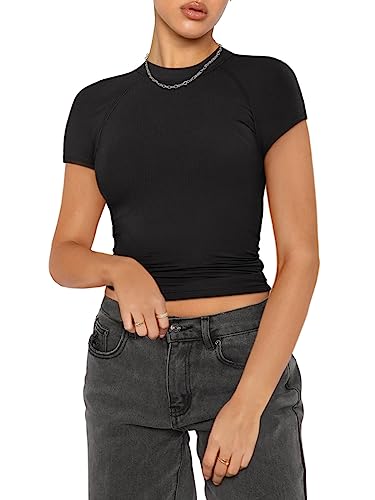 REORIA Women’s Summer Casual Mock Neck Short Sleeve Going Out Y2K Tshirts Crop Tops