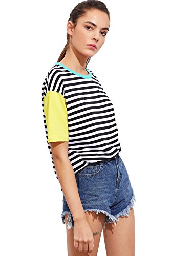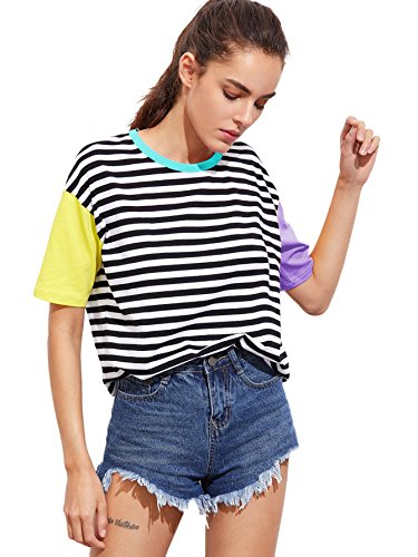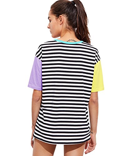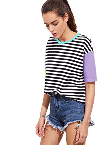 Romwe Women Crewneck Striped Short Sleeve T-Shirt Top Blouse