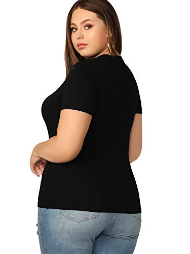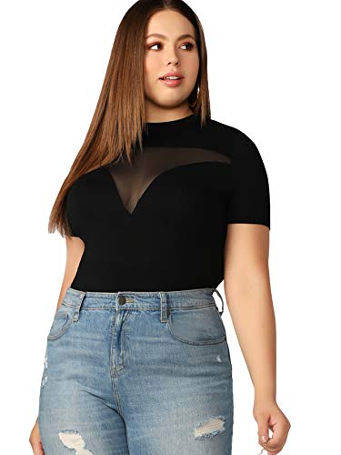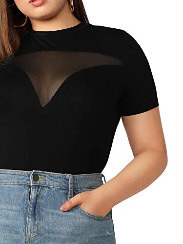 SheIn Women’s Plus Sheer Mesh Short Sleeve T Shirt Mock Neck Solid Tee Tops