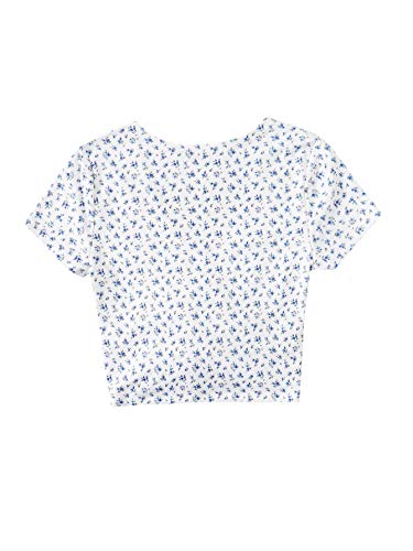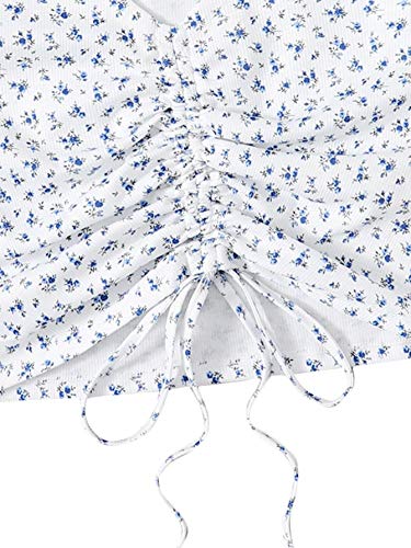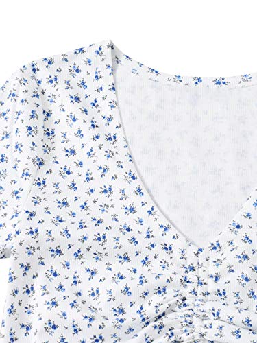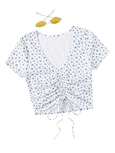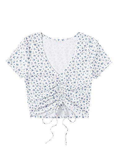 SheIn Women’s V Neck Short Sleeve Drawstring Front Solid Crop Tops