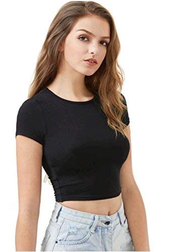 SweatyRocks Women’s Basic Short Sleeve Scoop Neck Crop Top