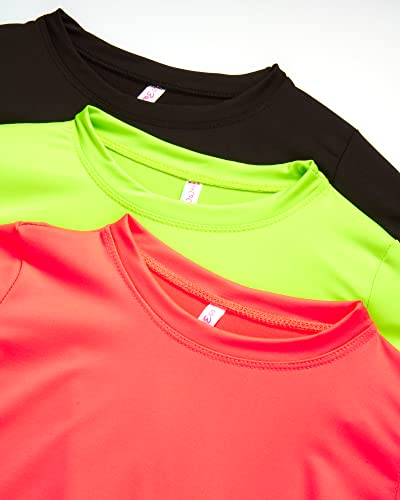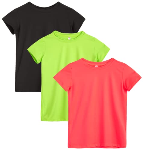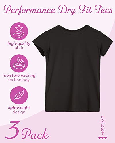 Sweet Hearts Girls 3 Pack Short Sleeve Dry-Fit Crew Neck Active Athletic Performance T-Shirt