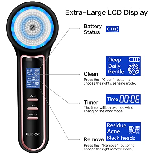 UMICKOO Blackhead Remover Vacuum,Rechargeable Facial Cleansing Brush with LCD Screen,IPX7 Waterproof 3 in 1 Face Scrubber Brush for Exfoliating, Massaging and Deep Pore Cleansing