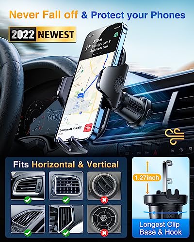 【No holder better than it】With the 2022 latest easy clamp and Metal-Cored Hook design,The four-point positioning of the phone holder for car can hold the phone stably while clamping one of the car’s air outlet blades. even on a bumpy road, enabling you to drive in confidence.Low-profile mount works with most car vents.