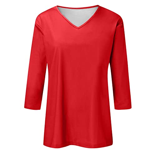 Womens Tops 3/4 Sleeve Summer Solid Plain Travel Cute Tops Vneck Slim Fit Half Sleeve Tshirts Shirts Spring Blouse
