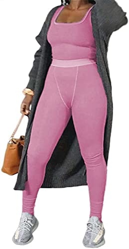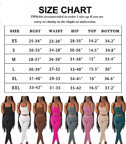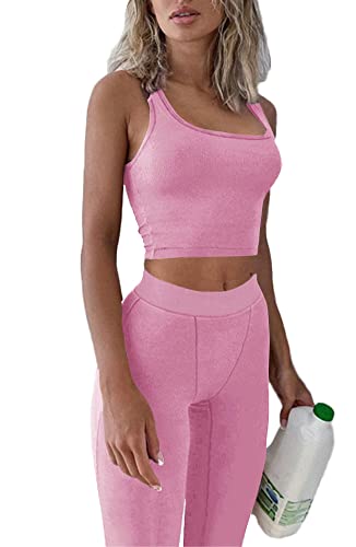 ZFLM Casual Workout Sets Two Piece Outfits for Women Ribbed Crop Tank Top High Waist Yoga Leggings Active Wear