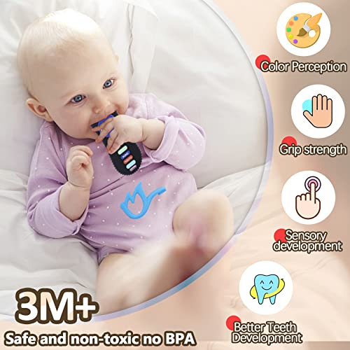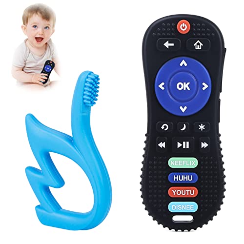 ZXBVSU Remote Control Teether & Silicone Toothbrush Teether – Soothing BPA-Free Silicone Teething Toy for Infants – Innovative Remote Shaped Chew and Sensory Toy